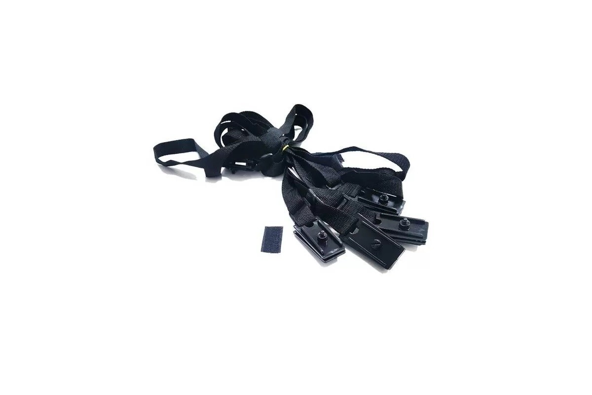 - A estrutura do enrolador é fornecida desmontada e inclui 8 fitas de fixação para prender a cobertura ao enrolador.