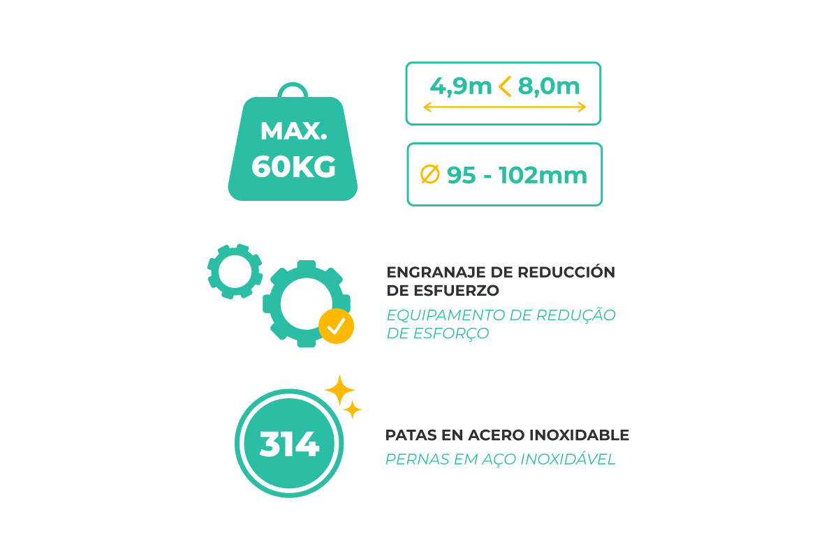 Este enrolador de mantas térmicas para piscinas até 7,70 metros de largura é composto por um tubo de enrolamento telescópico regulável que permite adaptá-lo à dimensão desejada. Recomendado para cobertura de bolhas até 60m2.